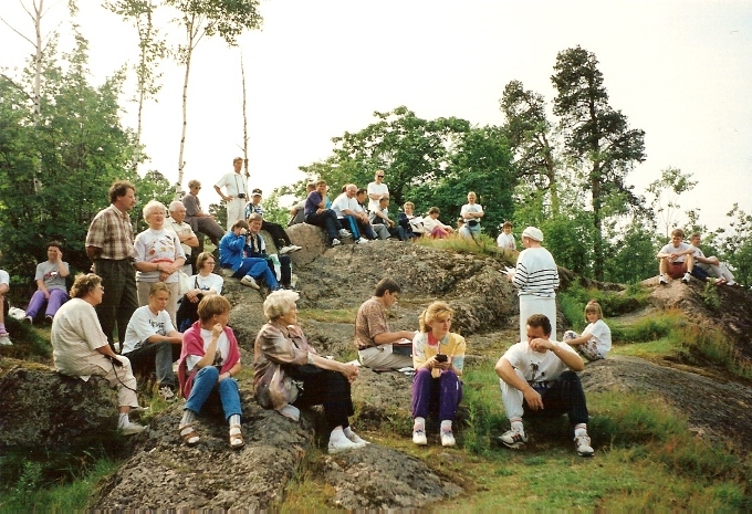 Vuosikokousasiat käsiteltiin Monrepos’ín puiston rantakallioilla auringon paisteessa.